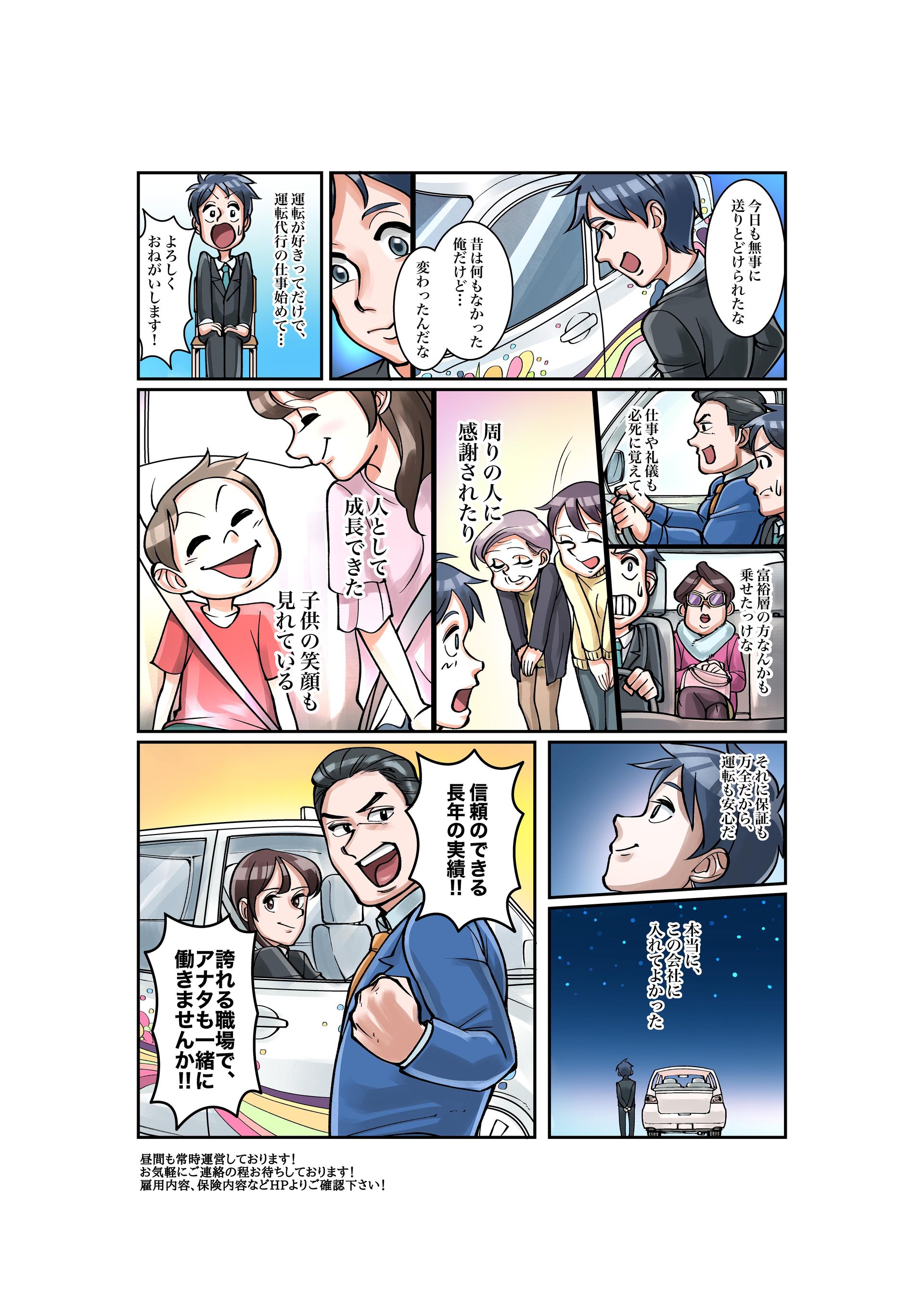 | 仕事の内容 | ①②運転代行業務